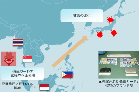 5月に入り、海外から日本に入国した外国人が、偽造クレジットカードの密輸や、大手百貨店における偽造カードの不正利用、さらに不正利用により購入した盗品の保管などにより検挙された、というニュースが複数ありました。