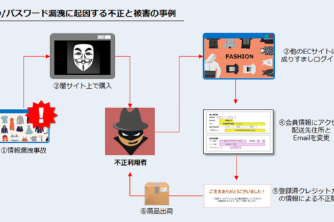 外部のウェブサービス等が不正アクセスの被害に遭い、メールアドレスやパスワードが漏えいします。それを自社のECサイトでログインされてしまい、登録済のカード情報を用いて不正利用されてしまう手口がここ数か月間で目立つようになっています。