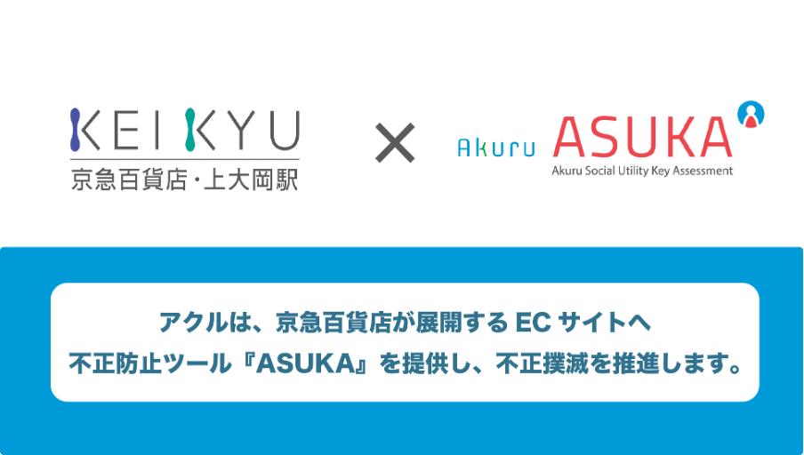 クレジットカードの不正利用対策へ向けたソリューションを提供する株式会社アクル(本社:東京都港区、代表取締役社長:近藤修、以下「当社」)は、株式会社京急百貨店(所在地:神奈川県横浜市港南区、以下京急百貨店)のECサイトにおけるクレジットカード不正検知・認証システム「ASUKA」の導入事例を公開しました。
